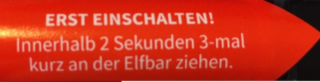 Und die folgende Mitteilung lesen: erst einschalten. Und dann innerhalb zwei Sekunden dreimal kurz an der Elfbar ziehen.